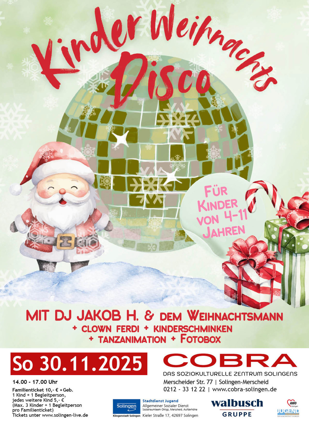 Kinder-Weihnachts-Disco mit dem Weihnachtsmann - Tanz Animation - Kinderschminken - Fotobox