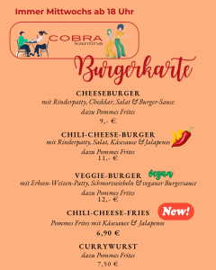 DIE COBRA KANTINE ist zurück – Burger-Tag, Kneipenspieleabend, Kino-Special!